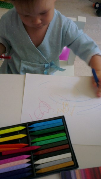 После отдыха занятия не идут совсем - говорит НЕТ(( Надеюсь, что Кирямба быстро вернется в строй. Умницу я пока отложила. Довольствуемся творчеством - рисуем и клеим наклейки. Наклейки, которые Кире нравятся она желает клеить только на себя, ну а те которые так себе можно и в альбом ))