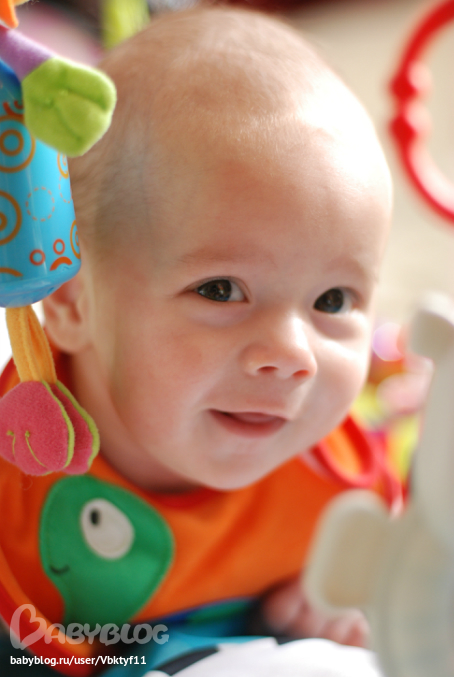 Мой малышНу вот наконец-то!!!! Я так ждала этот момент! Это как переход из младшей школы в среднюю :) Итак, 3 месяца 17 дней, вчера с самого утра сын пытался перевернуться на живот, пыхтел, кряхтел, ругался, упирался лбом в столик, плакал, но ничего не получалось. Вечером , когда он лежал на пеленальнике , я взяла камеру в руки и почувствовала прям, что вот он, момент истины;) сын, надо сказать, у меня упорный.... Доооолго тянулся, кряхтел и перевернулся таки!!!! А потом еще два раза!! Я успела все заснять на камеру:) а вечером , когда пришел папа, сын такое отчудил!!! Смех один!! Мы решили похвалиться папе, как мы научились переворачиваться:) сын схватил себя за ухо и вытянул на живот;) прям как мюнхаузен!! Теперь мы оттачиваем мастерство. Кстати, переворачиваемся через левую сторону.. И делаем это постоянно, даже когда кушаем сисю!!! Меняем подгузники, играем, укладываемся спать, кушаем, все в попытках переворота:) на следующей неделе еще массажик начнем делатт. Эхх, растем !!!!