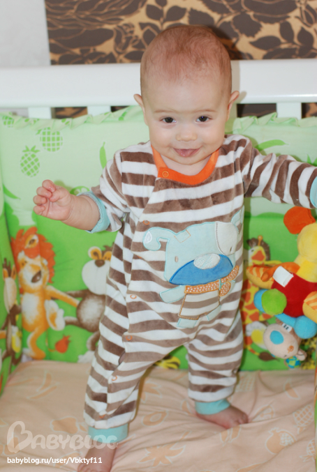 Елисей активно пытается стоять без рук. Уже недолго получается постоять, потом садится на попу. Падает все реже, уже уверенно стоит у опоры и сидит. Все жутко интересно, ползает за мной по всей квартире, причем с огромной скоростью. Розетки, - это самое любимое!!! Дальше идут провода, пульт от телевизора, телефон, айпед и клавиатура. Вчера вечером первый раз дала смесь на ночь. Выбрала Фрисолак. На сон это никак не повлияло, спал так же плохо, так что фигня, что говорят, буд-то смесь сытнее.. Три дня назад приходила к нам врач на предмет наших загноившихся глазок и кашля, ну и срыгиваний. Посмотрела... Выписала в глазки капать окомистин, в горло брызгать мирамистин. А так, говорит, все отлично!! Кашель от слюней, гноя мало совсем, срыгивает не знаю почему, темпа 37 норма... Потом уходя сказала, что на след. день позвонит наш педиатр. Есте-но никто нам не позвонил. Мой муж купил прописанные капли для глаз. Читаю инструкцию - запрещено использовать детям до 18 ЛЕТ!!!!! Это блин, даже не до года!!! Я в шоке конечно! Капать не стала. Через день все же звонит врач. Говорю, так и так, прописали капли для взрослых. Врач пришла через час (другая). Говорит, не верю, принесите аннотацию к каплям. Думала, я вру. Приношу, читаем. И тут она говорит : " Странно, а я и не знала! Мы всегда деткам прописываем, все капают!!". Я в шоке. Она снова говорит :" Ну это просто значит, что на детях не проводили испыnания, поэтому, вред от капель может быть меньше вреда от коньюктивита". Вот лично я испытывать неопробованные лекарства на своем ребенке не хочу!! Ну тогда, говорит, закапывайте ромашку. Потом просила ребенка (в 7 месяцев то!!) покашлять. Но сын почему-то не захотел кашлять на заказ. с этого последовал вывод, что все хорошо. Ну для приличия хоть его послушала. Про срыгивания тож сказала что не знает. Говорю, может узи брюшной полости надо? Ответ- ну сделайте! А может какакхи сдать? Ответ - ну сдайте.. Эхх, врачииииии!! Ну, в-принципе у сына уже все хорошо. Гной сошел, кашля нет, срыгиваем все меньше. Только я теперь болею, блин, еще и муж со свекровью уехали, приходится на ногах переносить. Вот такие новости. Ну и фотки сегодняшние.