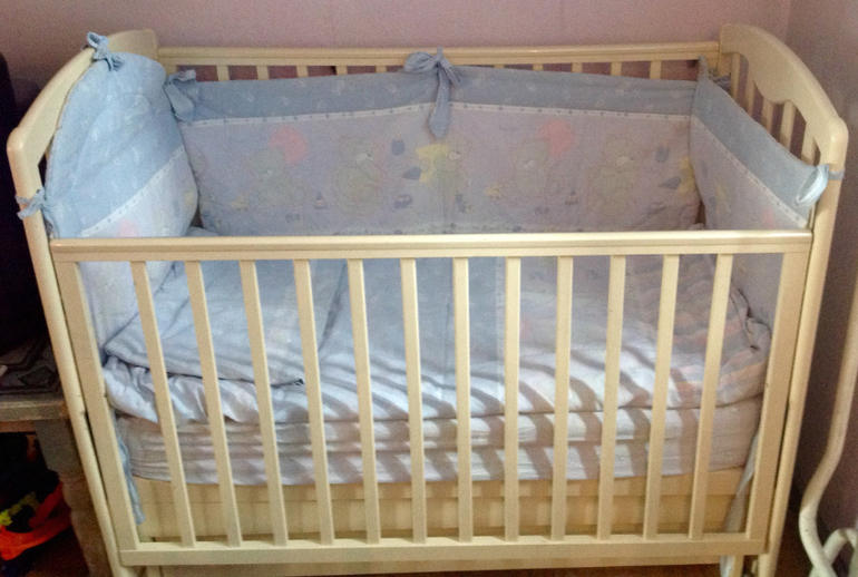 Продам кроватку Гандылян Диана. В подарок отдаю подушку для кормления, плед-конверт, матрасик для коляски.
