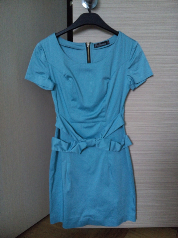 Очень стильное платье, цвет морской волны. В идеале, одето 1раз. Размер С. Перед украшен бантом. Сзади стильная молния. 1600 руб м.Новокосино