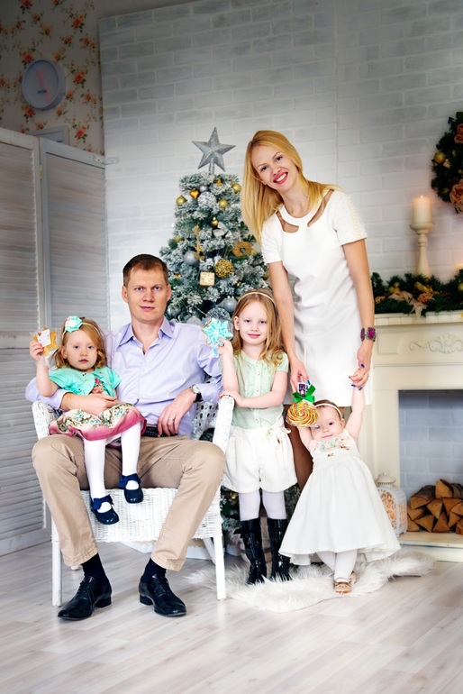Поздравляю с наступающими праздниками! Пусть в новом году будет все только хорошее. Вы- чудо! Очень красивая фотография. А девочки, кажется, на папку похожи больше)