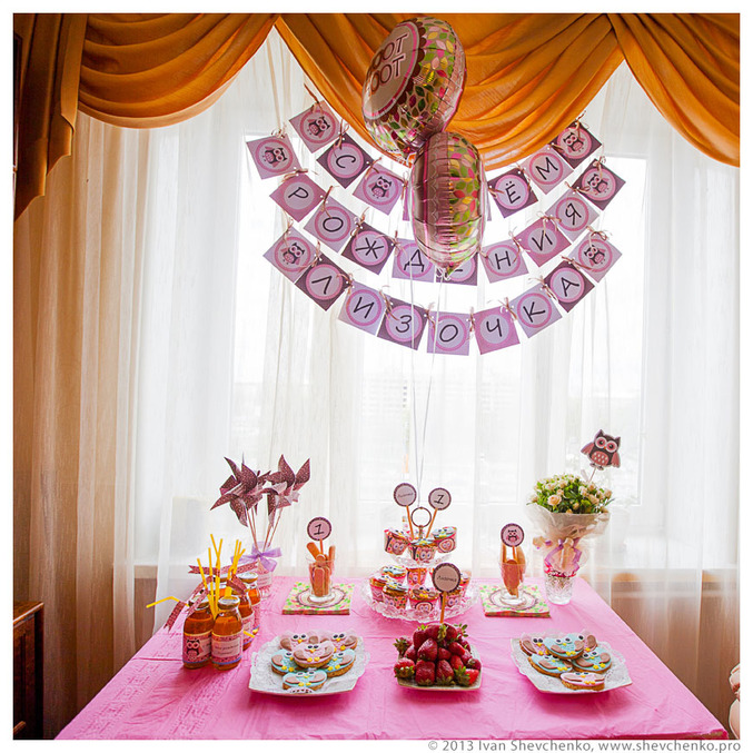 О дне рождения Лизуни начала задумываться месяца за 2,но как всегда, почти все было сделано /куплено в последний момент. Праздновала почти как свадьбу-3дня. В сам день рождения позвали только детишек с родителями , вот его и покажу, так как остальные два дня сил снимать уже не было.