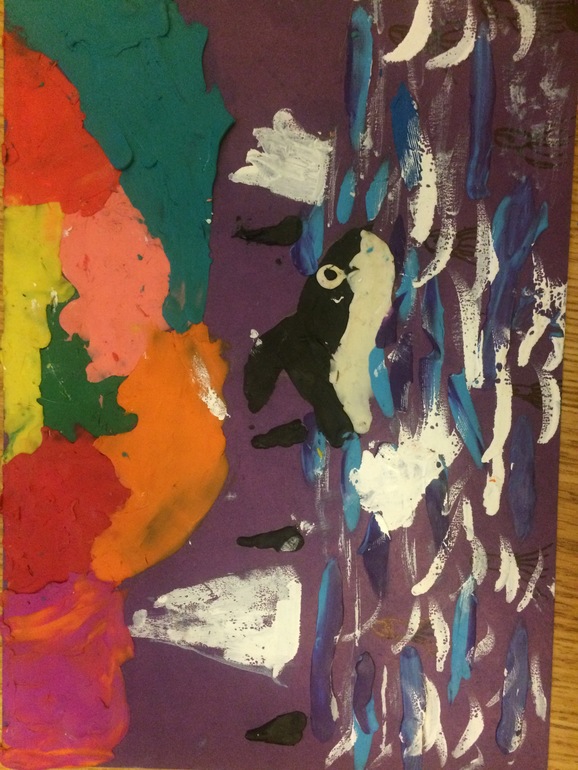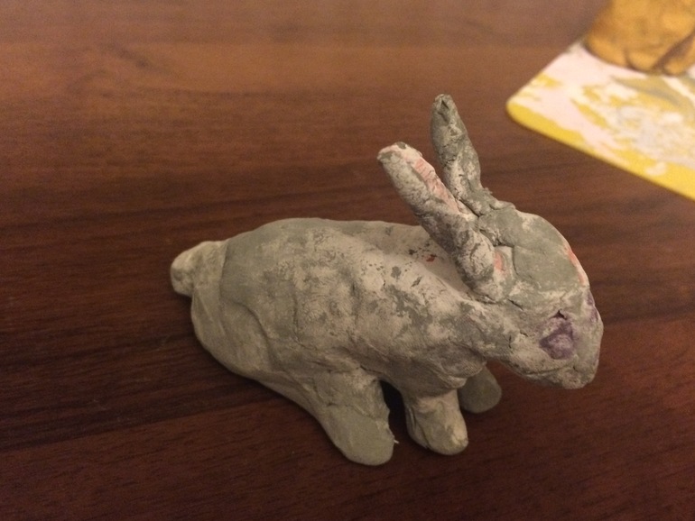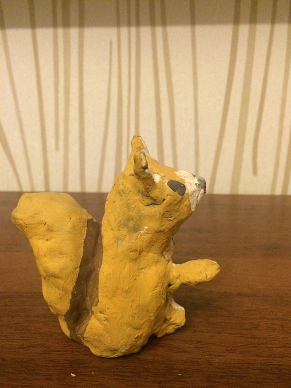 10.01.2016 глина, гуашь ( гуаши мало, заяц упал, пришлось опять перелепливать)
