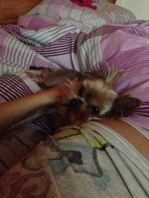 У меня собачка мелкая есть - йоркширский терьер какой-то супер мини, девочка. Такая она у нас умница, я прям не могу)) так вот Катька (это мы так собаку по простому дома зовем)) первые месяцы моей беременности ко мне вообще не подходила - ревновала жутко. Постоянно обиженная ходила, с рук ничего не брала (и это при том, что всегда когда я за столом сижу, ее на колени усаживаю и кормлю), спать со мной перестала. А теперь наоборот привыкла и так и норовит на живот залезть, да ушком прижаться) спит теперь прижавшись к животику или к спине) а малыш, как только Катя хотя бы голову на живот положит, сразу пинаться начинает) не нравится ему))