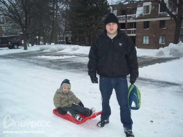 СемьяДождались красоты выпал снежок который уже около 14 лет я не видела. И сказать честно очень по нему соскучилась. Купили Рончику санки и пошли кататься, муж как ребенок катался с горки, а Рончик ему в этом помогал.