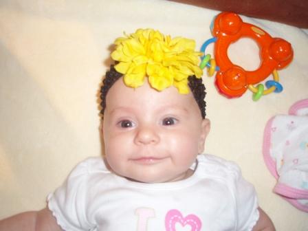 Повязка супер.Но мне кажется посветлее что нибуть лутше будет.Чёрный ободок как то не очень.А вот цветочек в самый раз. А меня кстати тже в детстве кнопкой называли.И даже в девичьем возрасте парни кнопкой обзывали.А в Америке таким добрым ласковым именем даже никто и не назовёт.А если даже научишь,то будет с акцентом,уже не то