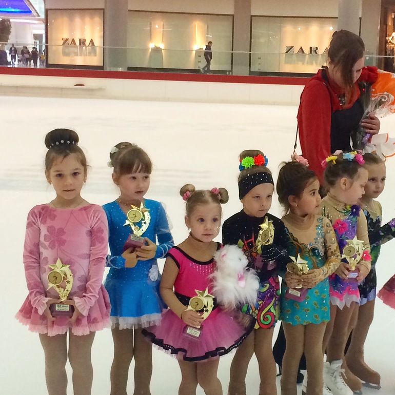 Ангелина выступала первый раз, выступление было в ТЦ, репетировали там 1 раз., Дана вроде начала ничего, но как подъехала к игрушке,?которую не успели со льда убрать решила на середине номера что пора заканчивать, сделала последний элемент и все..)