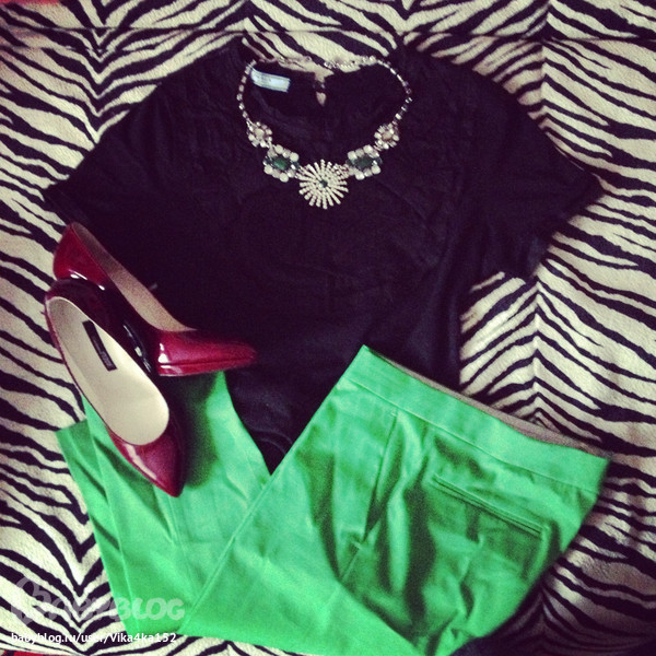 а я в бежевой юбке в пол и в бежевой блузке с СИНЕЙ вставкой))) в свет пока не выхожу, хоть дома наряжусь))) Ожерелье опупенное!!!