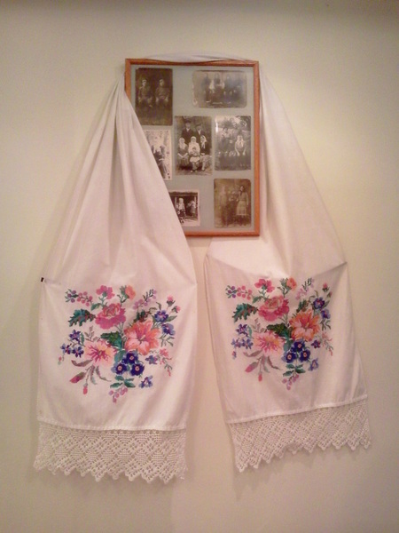 Вообще я очень люблю ретро-вышивку. Моя бабушка очень хорошо вышивала гладью, но мама по глупости почти все выкинула. Уцелели только две работы - гениально выполненная большая скатерть гладью, заляпанная застарелыми желтыми пятнами, и батистовый абажур в технике ришелье, прожженный в одном месте. Это все нужно реанимировать, в следующее лето займусь этим обязательно и вам покажу, а пока - вот такая красота, которую я сфотографировала на работе.
