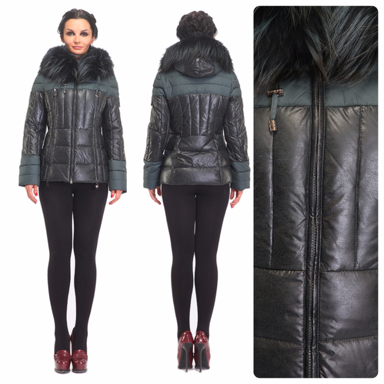 Очень оригинальный короткий пуховик выделяется как цветом, так и кроем. Множество металлических молний гармонируют с блеском ткани, а продуманная стежка и приталенный силуэт подчеркивают фигуру . Необычный, сложный цвет пуховика проще назвать так: цвет тайны сумеречного зимнего леса. В нем оттенки легкой дымки между стволами и неяркий блеск подмерзших листьев. Длинный натуральный мех енота, подкрашенный в основной цвет, как пушистые лапы елей, добавляет загадочности образу. Вы можете стать лесной феей или остаться стильной городской леди. В любом случае, в таком пуховике с утеплителем из натуральных материалов, Вы будете чувствовать тепло и комфорт.
