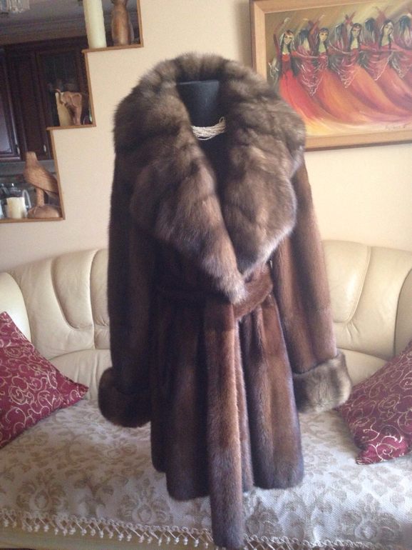 шикарная шуба с соболиным капюшоном из стриженой норки фирмы Vito Ponti, размер 50-52-54, длина 75 см