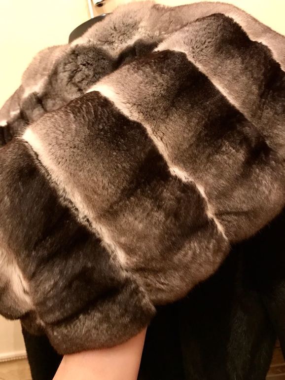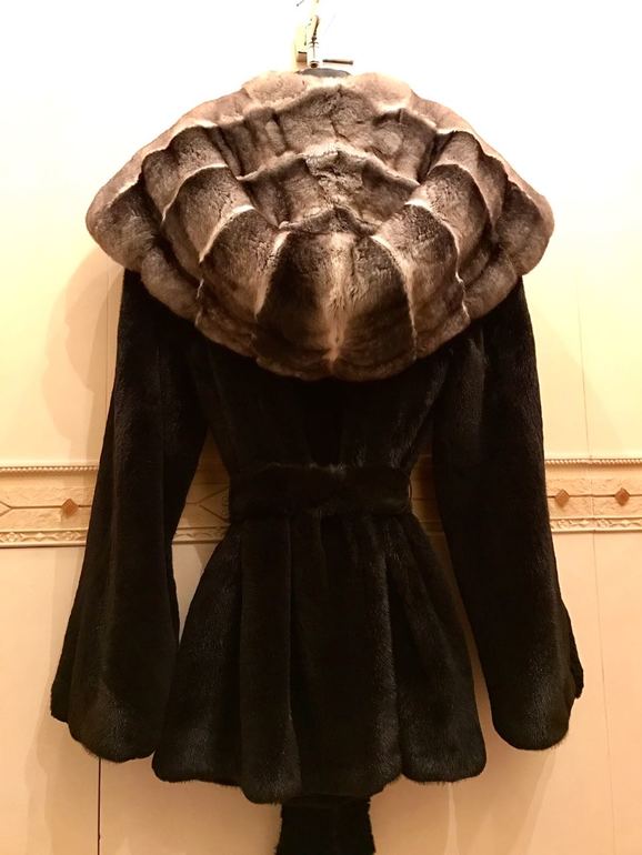 Норковая шуба - шикарное пальто из бархатной, полированой черной норки с красивым капюшоном из настоящих шиншилл!Очень элегантно выглядит , обратите внимание-капюшон эффектно лежит на плечах и раскладывается как пелерина✨👌🏼🇮🇪