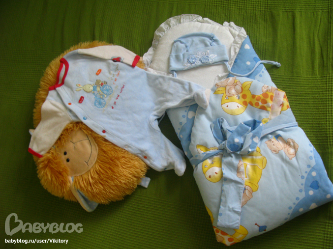 Три вещи: конверт с плотной спинкой, сам конверт на синтепоне; шапочка и слип. Все в отличном состоянии.