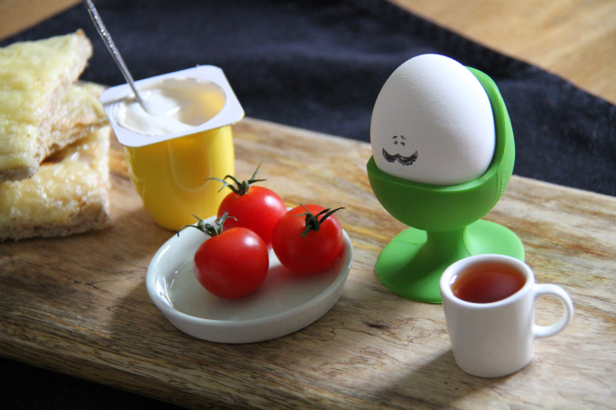 а вот Mr. Egg собирается завтракать, Мика его любит (я сама в детстве яйца вроде не ела?)