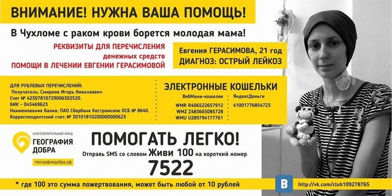 Наконец-то! завтра, 11 февраля, наконец покажут передачу о моей землячке, больной лейкозом. 21 год, сыну нет годика, есть возможность вылечиться - нет средств. (ссылка на мой пост)