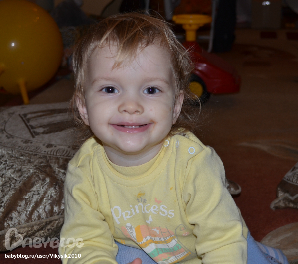 Что умеем? Ну много чего....... и немного болтает (Мама, папа, деде,баба, куку, и всякие каляськи маляськи...), и, иногда, просится на горшок.....спим еще вместе, т.к. грудь у нас на первом месте...........зубиков -всего 12 шт.