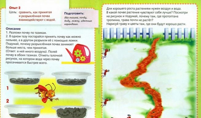 Например, эксперимент с почвой и водой, есть в пособии "Простые опыты с природными материалами" М. Султановой.