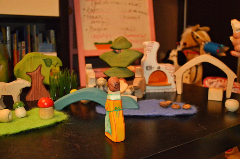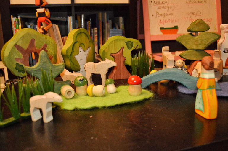 Много играли с деревяшками. Инсценировали сказку Лиса и Волк.