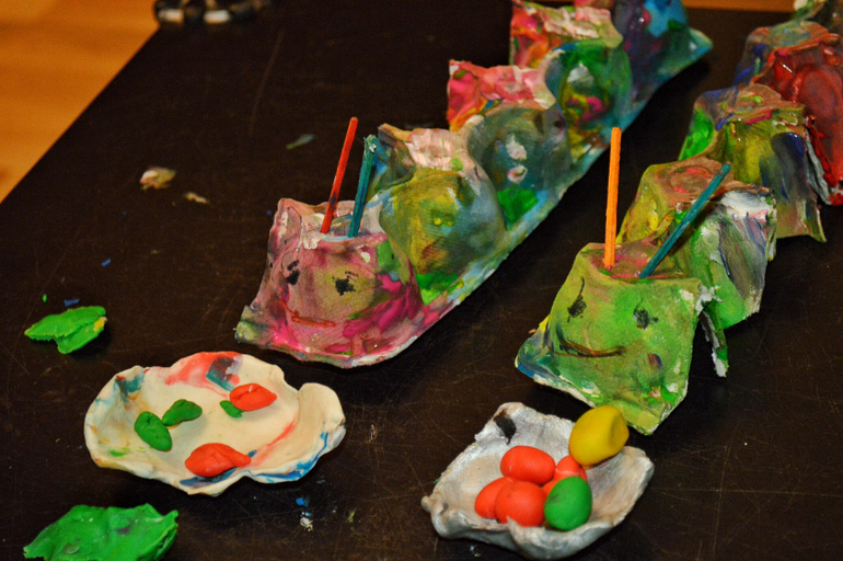 Читали книжку на английском языке, а потом сделали разноцветных гусеничек и накормили их овощами-фруктами. У Даши первый раз получилось скатать шарики из пластилина, а не колбаски, чему она была несказанно рада!