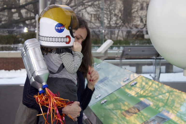 Поход в музей на космическое шоу. Конечно, в полной аммуниции: в шлеме от скафандра, с реактивным ранцем за плечами (папа постарался), а на перекус- настоящее космическое мороженое. Которое по вкусу на удивление, действително, как мороженое.