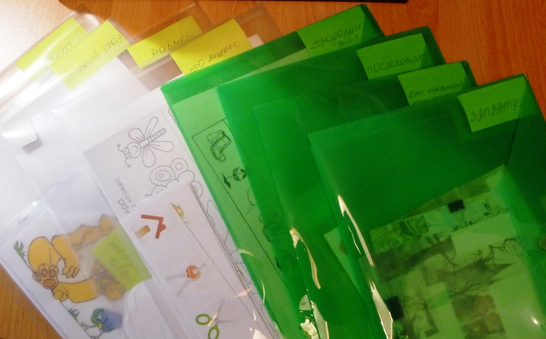 После окончания занятия все материалы раскладываются по отдельным подписанным папочкам (занимает не более 5-ти минут).