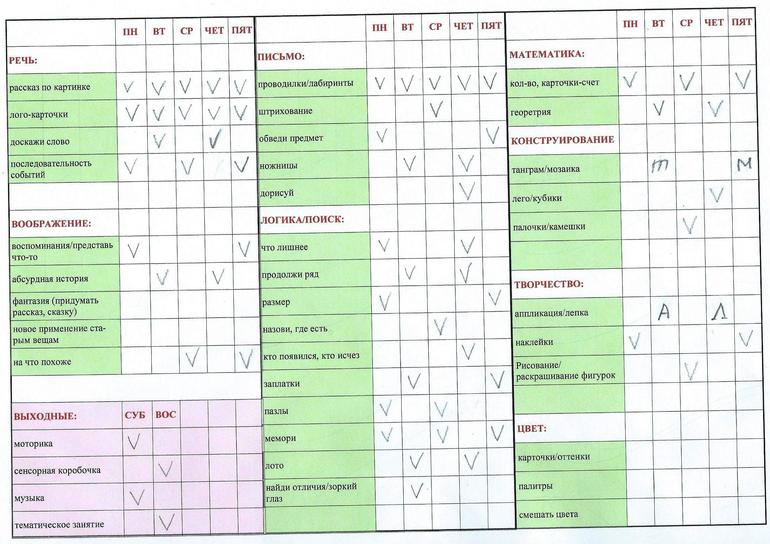 Это все еще черновой вариант плана. Мы живем по нему примерно месяц. Некоторые пункты изжили себя, на их смену просятся другие. Чтение книг, физическое развитие, естествознание и прочие виды деятельности вне плана. Отдельные пункты, например мемори, лепка, рисование имеют несколько вариаций, поэтому разнообразие соответствующее. В план не включены опыты и т.п., этим мы занимаемся по мере моей возможности.