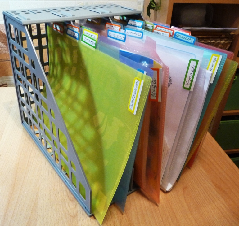 Пять папок на пять дней недели хранятся вот в такой офисной подставке.