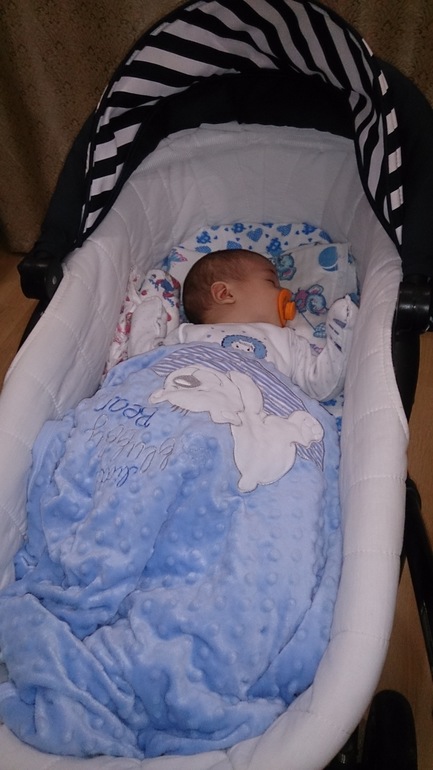 Дима спокоен. Плачет только по делу. В основном, когда я нагрешу с питанием. Засыпает сам, часами я его на руках не ношу и в коляске не качаю. Но спать любит в коляске больше, чем в кроватке. Кушает неплохо, подгузники , как гири))))))) В плане ухода он мне доставляет меньше хлопот, чем собака. Она, как раз, основной вынос мозга в нашей семье. Но это отдельная тема, напишу как-то пост...