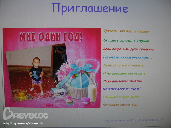 17 октября моей Ясечке будет годик. Подготовка уже давно идет полным ходом. Вот небольшой отчетик