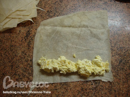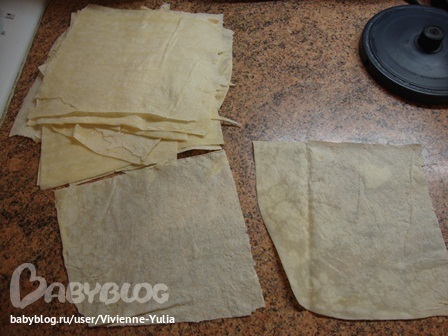 Режем лаваш на квадратики. Вообще мама делает полосочки подлинее, ей так удобнее складывать трубочки в круглую сковородку ))) Не суть важно, как хотите так и режьте :)