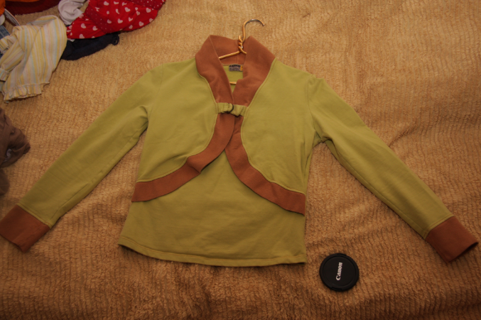 Размер одежды S. Две кофты с рукавами, одна без и еще синяя футботка. Зеленая с длинным рукавом практически не носилась мною, вообще как новая, без косяков. 350руб.