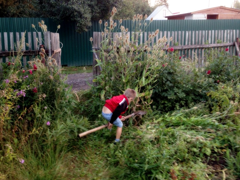 а вот и юный садовник, кстати. (это когда лопата была еще цела))