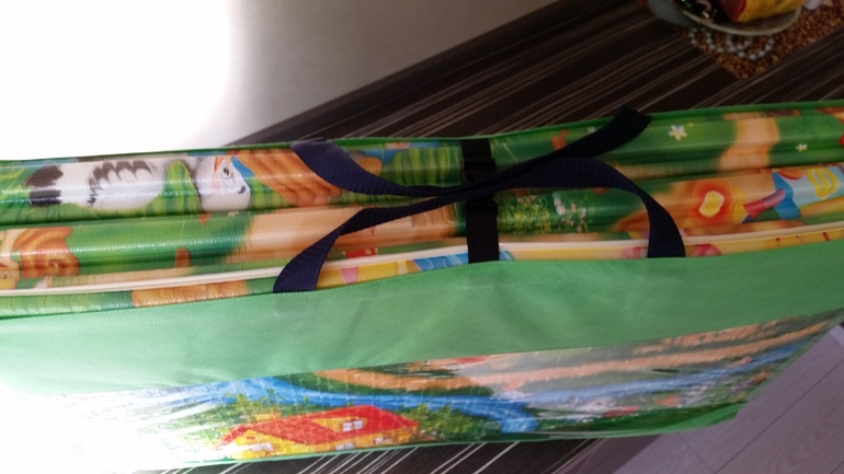 Огромный коврик складывается в компактный, удобный для переноски чехол.