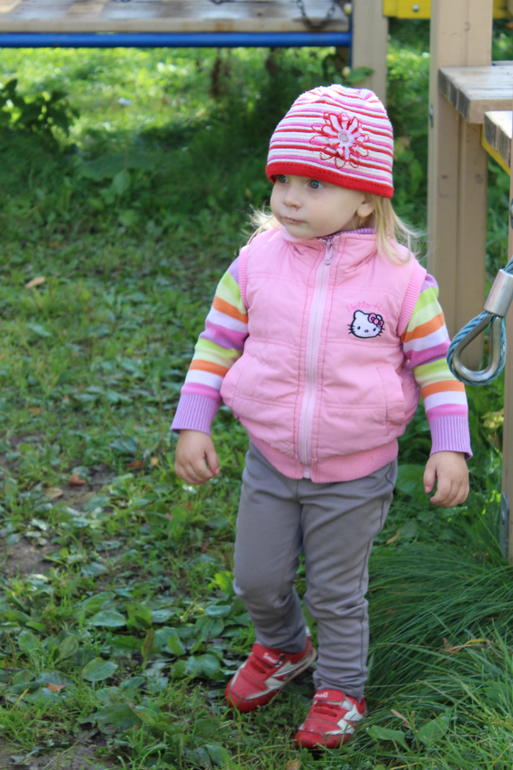 Аленушка наша мерзлячка,ей куртку подавай)) А Алинчик, чем меньше одежки,тем лучше.