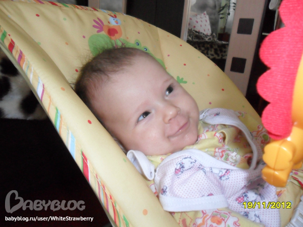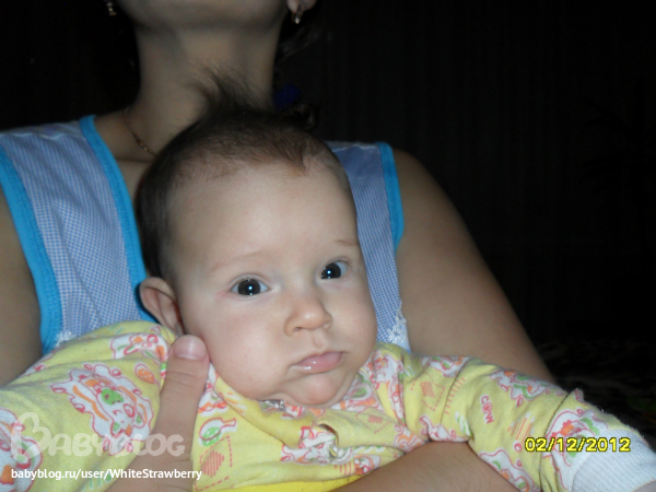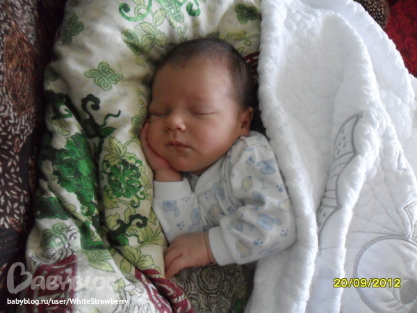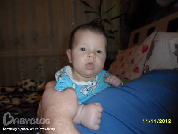 Есть много хороших новостей.... ну, например - мы уже сами засыпаем (а раньше только на руках укачивали его)... сейчас кладу его возле себя, даю соску, пою песенку, он мне подпевает (так забавно ворчит с соской во рту!), и засыпает! Какое облегчение! Я вам не передам! Просто не верю собственному счастью! Ложимся в разное время... Последним временем засыпаем в 23.30 у себя в кроватке, просыпаемся в 05.30, кушаем, спим дальше между мамой и папой, одеяло с них стягиваем! Точнее сталкивает ногами. И так до 9-ти утра. =) Как нам нравится купаться в круге! Не передать словами! =) Свою ванночку уже не любит - начинает пищать. А каждый день напускать полную ванну нет возможности... увы... ап так хотелось бы... =( Кушаем по-прежнему только сисю, больше ничего... =)