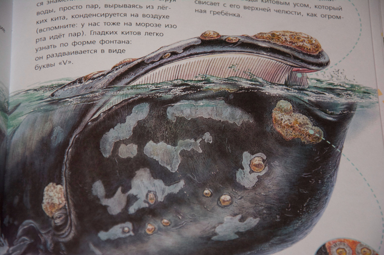 Кит - гладкий, питается путём фильтрации, отцеживая пищу из воды китовым усом!