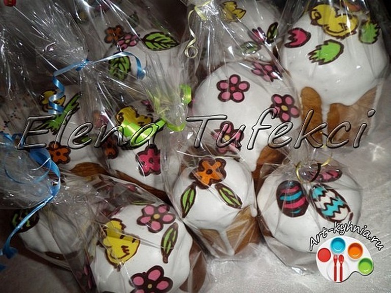 Когда глазурь застынет куличи можно упаковать в прозрачную пленку, чтоб они дольше оставались мягкими.