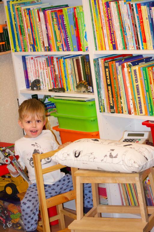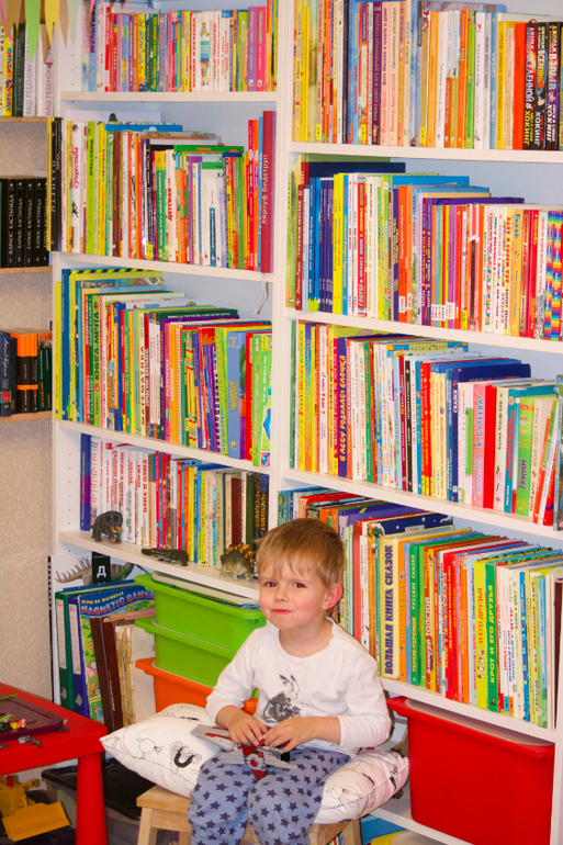 Рося прыгал как индейка и кричал: "Ой, мамочка, сколько книжек! У нас библиотека" У Папы вырвалось: не, повторять нецензурное слово нельзя, поэтому: "пиииииип, себе книжный магазин))))" А я, оглядев пристальным взглядом полки подумала: "Маловато будет!"