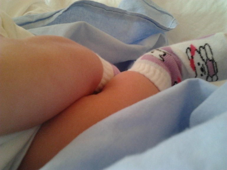 Сон у нас наполовину совместный. С вечера она засыпает в кроватке, а к утру (в промежутке от 3.30 до 5 часов, по-разному бывает) я беру ее к нам, кормлю, потом досыпаем вместе. Так что мы с мужем успеваем наобниматься хотя бы во сне:))))