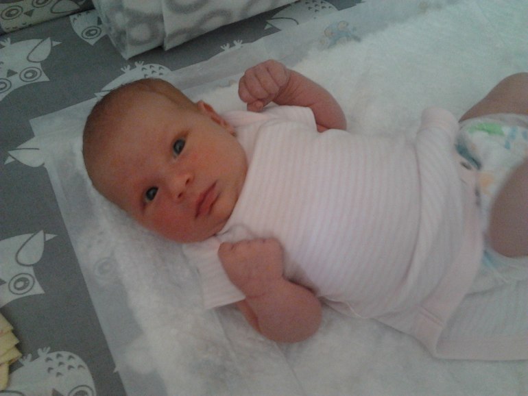 Пошли первые улыбочки, пока нечасто-серьёзная дама:) в основном сосредоточенно нас всех разглядывает.