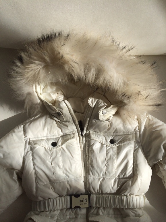 Дд! Он белый теплый, можно сказать молочный! Пух! Теплый и легкий! Аналог монклера). Отдельно только парку продам) состояние отличное! Ни чего не порвано и не протерто! Б/у мало)