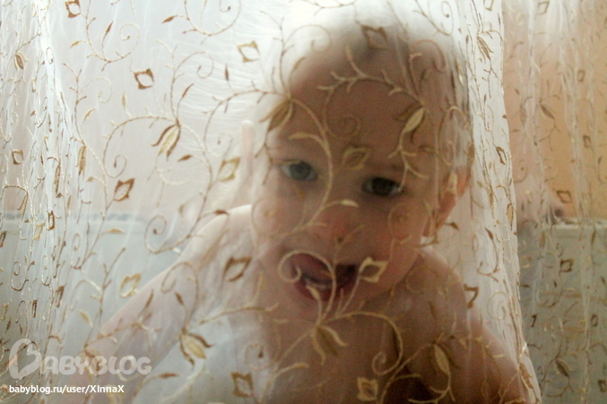 Так любят играть с тюлем и шторами, что срочно пора за новыми - укороченными, ибо в детской все шторы уже ободраны. Длинные больше не вешаю, т.к. в последний раз на них чуть корниз не упал - повис на честном слове.