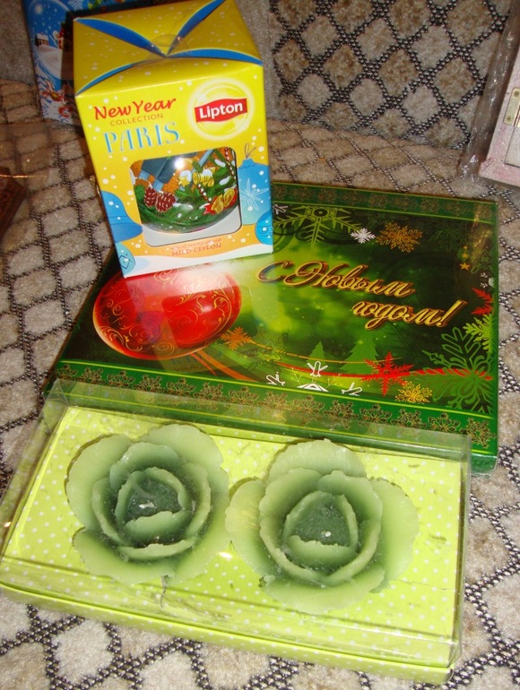 Вкусняшки, с эксклюзивной коллекцией, чай старший сын прибрал себе - отдельное спасибо от него за чай. Красивенные свечки, зажгем в Новогоднюю ночь