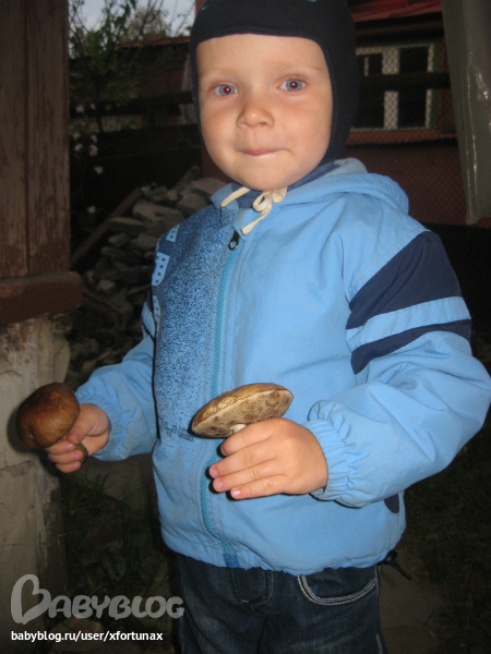 Ваня впервые потрогал настоящие грибы, дедушка специально для него, привез из леса мухомор. Ваню мухомор порадовал, а вот остальные грибочки не особо. Потрогал масленок, действительно "липкий гриб", вспомнил стихотворение про мышонка. Еще в корзине были опята, подберезовики, подосиновики, белые грибы, чернушки. Ваня почему то решил их покидать как мячики.