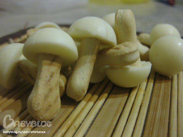 Считаем грибочки. Для этих целей купили в кондитерском маленькие грибочки, покрытые глазурью.