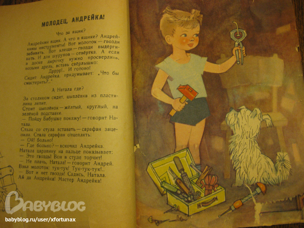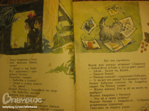 Я очень давно не видела эту книгу, не ожидала, что она сохранилась, но в памяти оставались эти потрясающие иллюстрации. Не знаю как так возможно, но помню, что просто растворялась в них. Еще надо отметить, что моя бабушка ну ооочень похожа на эту бабушку из книжки, а еще у меня есть брат, не Андрейка, но тот еще "воробейка". Вобщем много общих точек соприкосновения для детского восприятия.