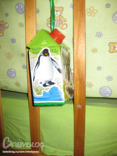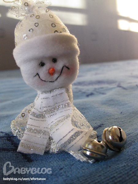 Этого снеговичка мы решили повесить в машине на окошко около Вани, он прикольно позвякивает во время движения.