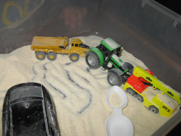 Только игрушки лучше подбирать без отверстий и открывающихся дверей, которые мыть хорошшо. У нас с черной машинкой казус случился, в нее манка забилась внутрь и стала вонять, пришлось даже ее разбирать чтобы помыть. )))