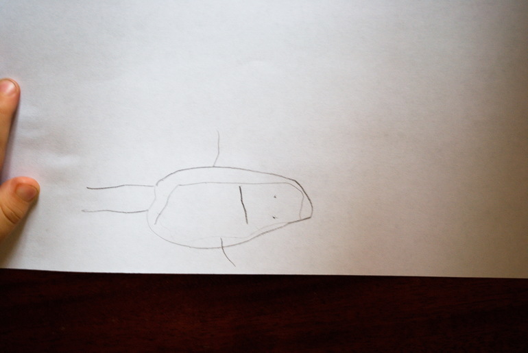 Первый более менее самостоятельный головастик) Рисовал лялечку, сам придумал. Сказал нет пальцев, носа и пупка потому что она маленькая еще